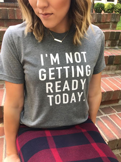 So I decided to make myself a tee that says "I'm Not Getting Ready Today" partly to show my stubborn side and partly to lighten my Monday mood! Having my own clothing business is so convenient and handy. I couldn't be happier with how it turned out!