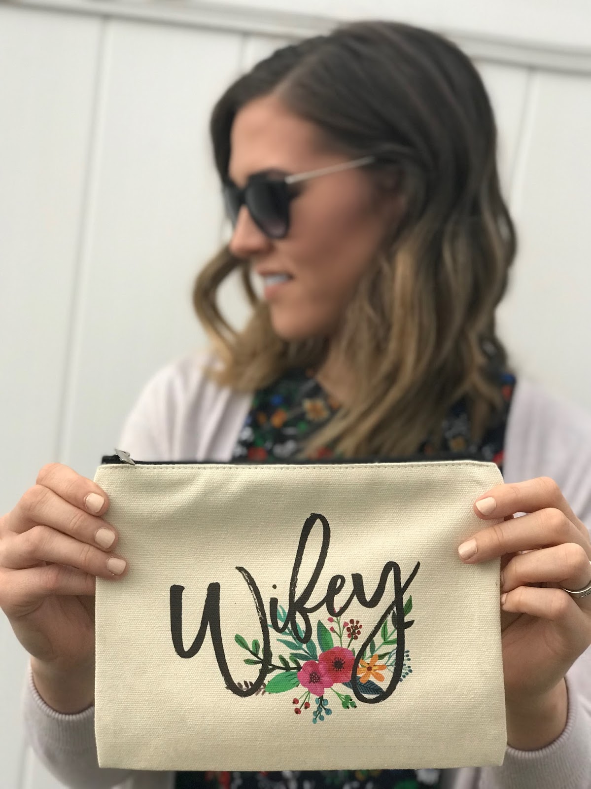 I have loved getting to know these two better and see what makes them and their shop unique! And I LOVE the cosmetic bags they sent me. I got the floral "Wifey" one and a customized name one. So cute!